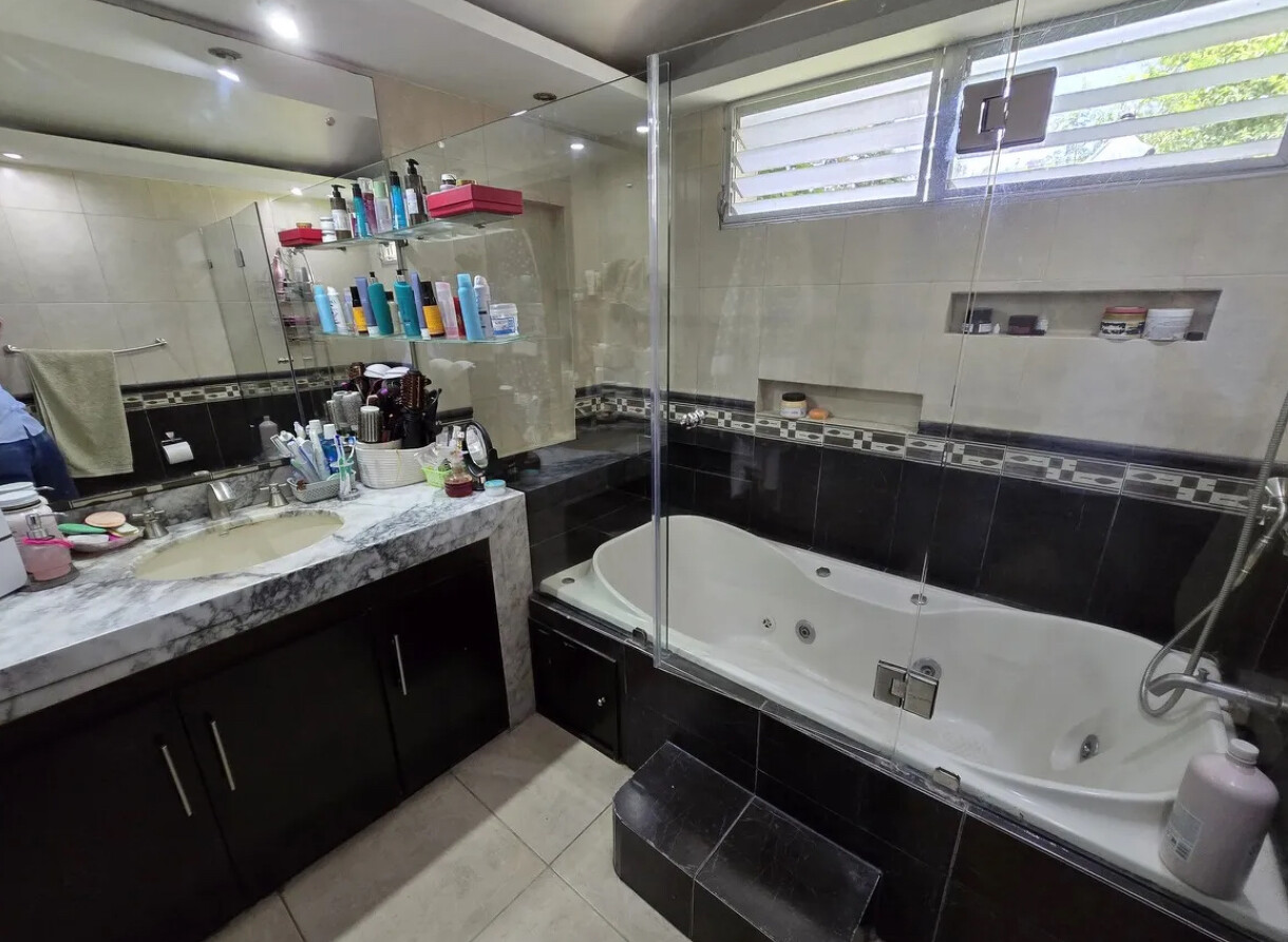 Recámara principal con amplio vestidor, baño completo y tina.