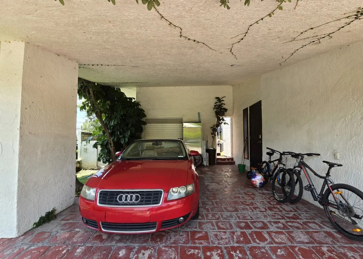 Cochera techada para 2 autos, más espacio para 4 autos sin techar.